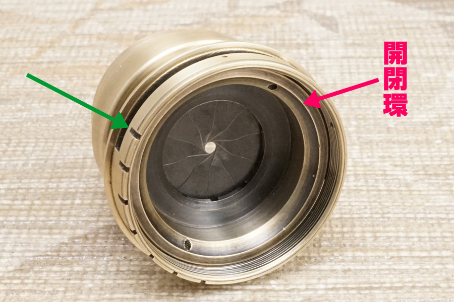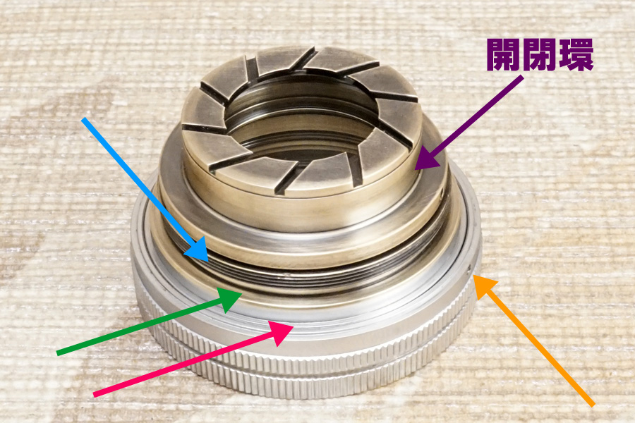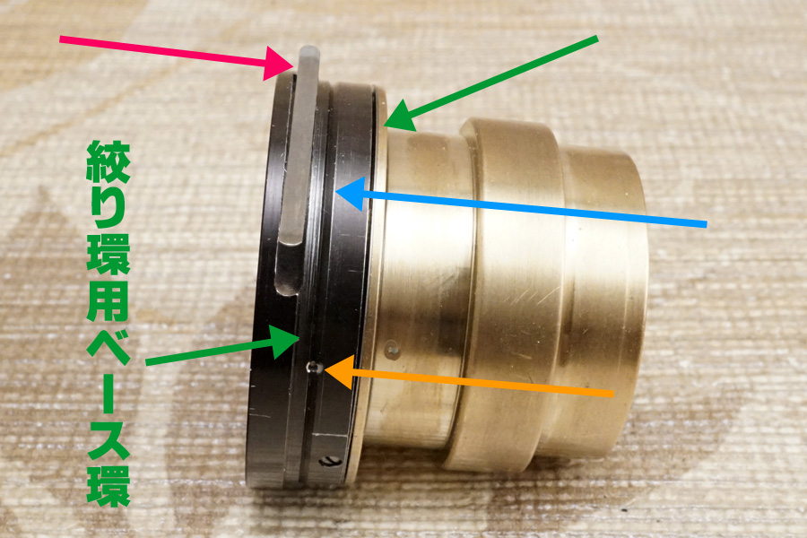 しかしこれをピタリにセットしようとすると、今度は絞り環用ベース感や開閉環との間の空間が極々僅かですが空いてしまう為、絞り環の上下方向でのガタつきを誘発しました(汗)