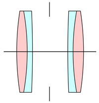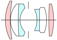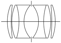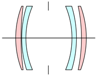 ガウス氏が提唱したガウス理論に基づき、絞り羽根の両側に同じ考え方で配置させた光学設計と言えます。