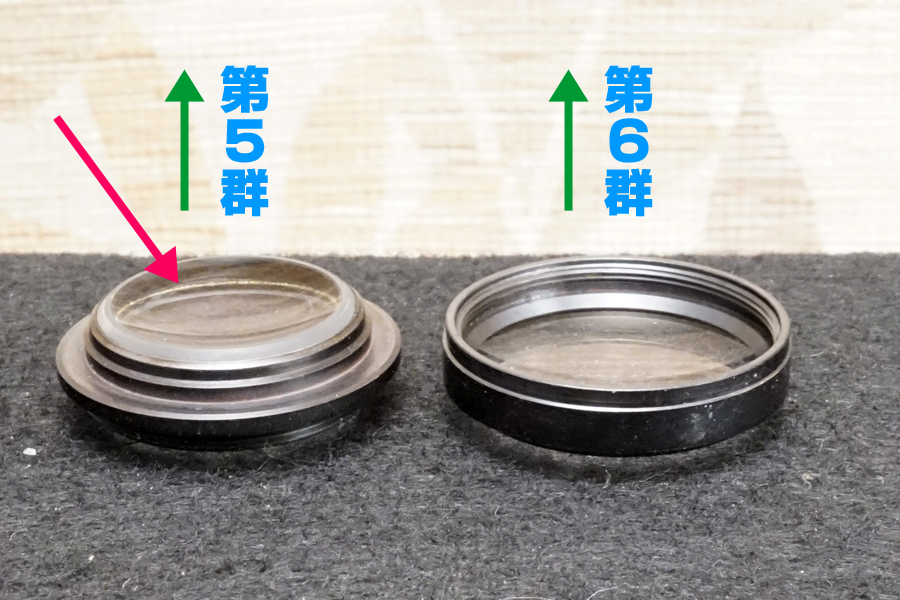光学系内第2群の「空気レンズ層」蒸着コーティング層が剥がれた