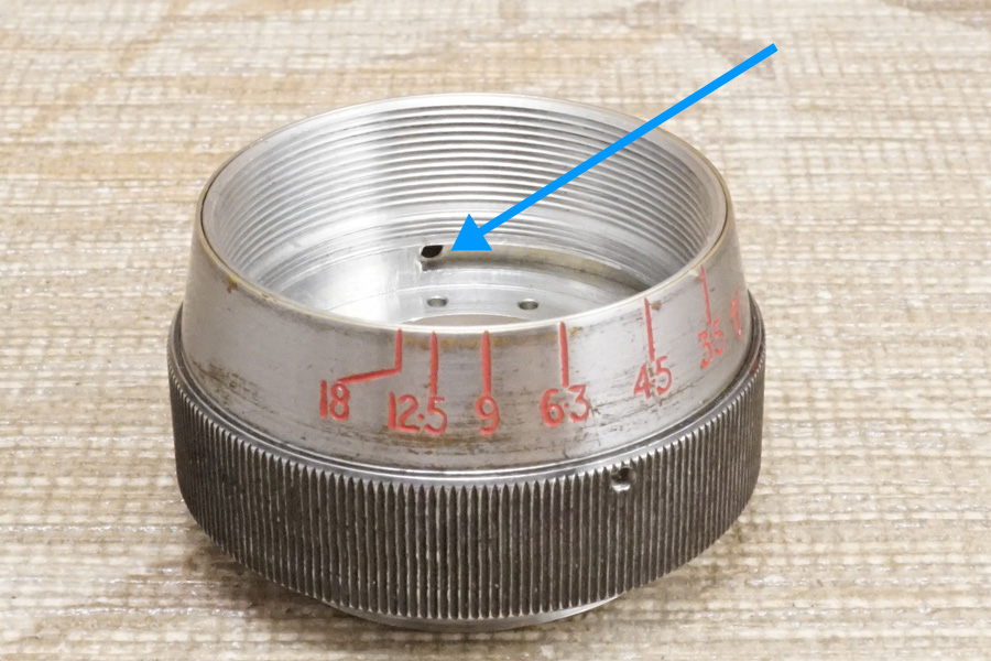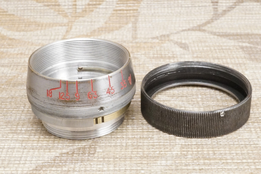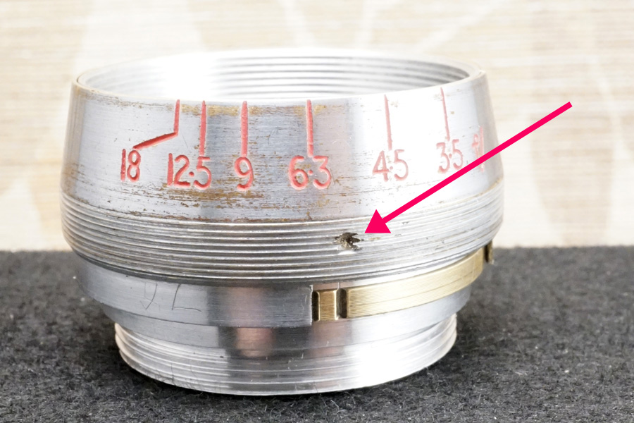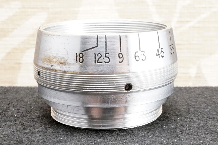 また刻印してある絞り値は「大陸絞り」なので「f3.5 → f4.5 → f6.3 → f9 → f12.5 → f18」の順になります。