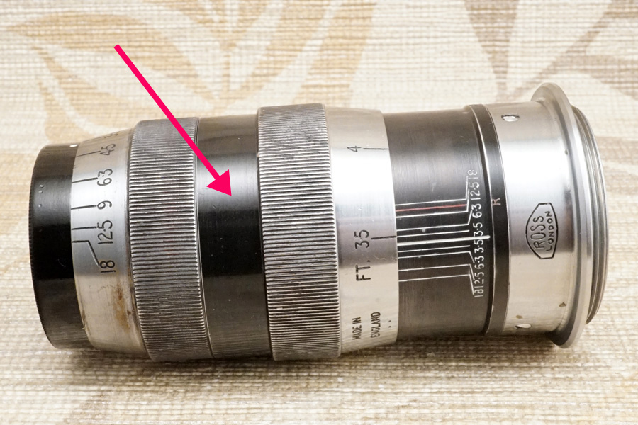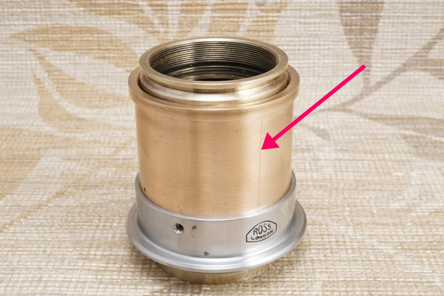そして前述の1954年の社名変更と合わせて辻褄が合い、鏡胴のマウント部直前に「誇らしげに刻印されているROSS LONDON」を根拠にして、1953年の製造個体と結論づけしました(涙)