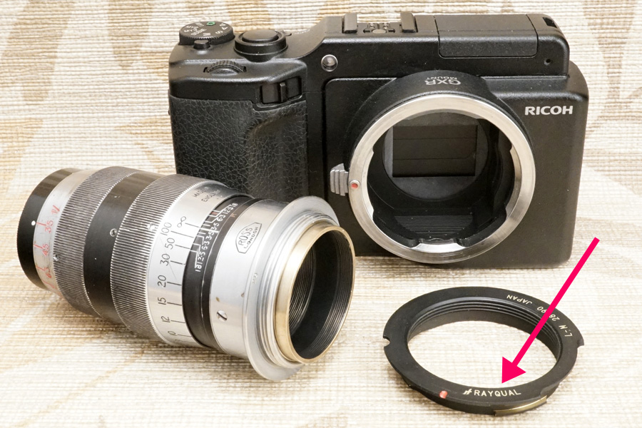 ↑当方所有RICOH製GXRにLMマウント規格のA12レンズユニットを装着し、ライブビューで無限遠位置の確認など行い、微調整して仕上げています。その際使っているのは「Rayqual製変換リング (赤色矢印)」です。無限遠位置は「∞」刻印の僅か手前位置のオーバーインフでセットしています。(あくまでも当方での確認環境を明示しているに過ぎません)