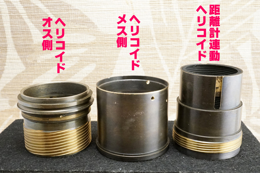 上の写真のように、アルミ合金材のヘリコイドオス側㊧と、黄銅材のヘリコイドメス側㊥が、互いに擦り合って経年の中でヘリコイド駆動していた場合、削れていくのはアルミ合金材と黄銅材の両方なのは、物理的に考えても納得いくと思うのです (但し同じ分量で削れていくとは限らない)(汗)