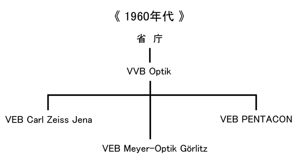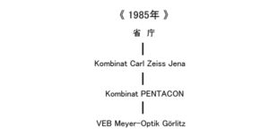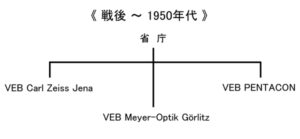 従ってここからの解説ではまず最初に、敗戦時の東ドイツでどのような国家管理体系が組織化されていったのか、そしてその中で大きく3つの企業体を取り上げ、Carl Zeiss JenaとMeyer-Optik GörlitzにPENTACONを追い続けることで、1946年〜1989年までのスパンで互いの企業体の変遷を追っていきます。