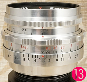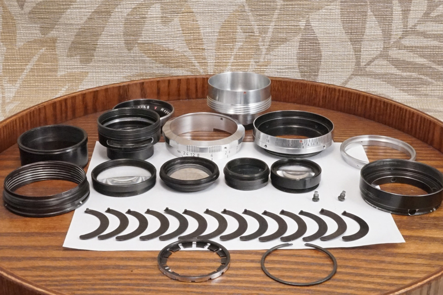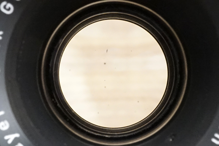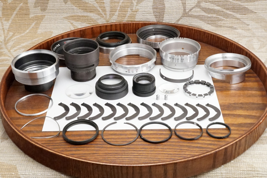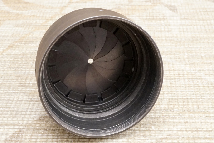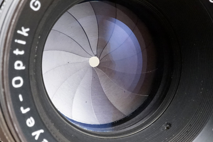 ↑14枚の絞り羽根もキレイになり、絞り環共々確実に駆動しています。絞り羽根が閉じる際は「完璧に円形絞りを維持」しながら閉じていきます。4群5マイプリモプラン型光学系の描写特徴に合わせて、この絞り羽根の虹彩絞り方式により、まさに「アートレンズ」と呼ぶにふさわしい、芸術性豊かな写真を残せるのではないでしょうか・・。