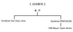 その後1970年代後半には、写真機産業側では、指示命令の経路が「省庁 → VVB → Kombinat」から「省庁 → Kombinat」へ移る措置が取られます。