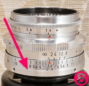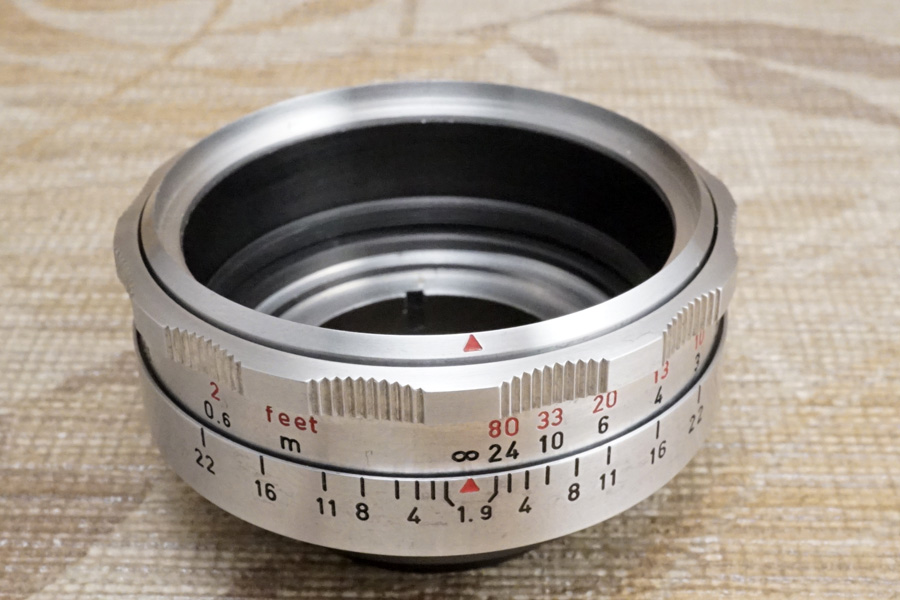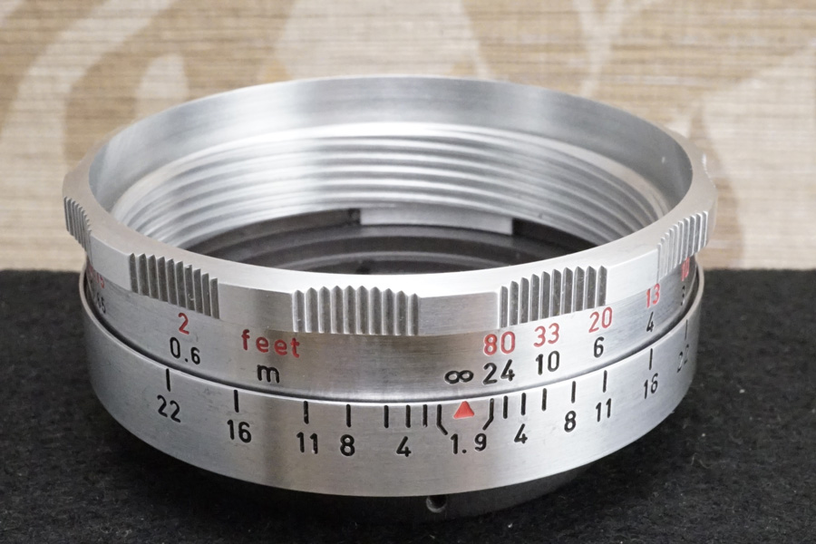 このモデルの場合「絞り環」になるのは「絞り値が刻印されているほうの環」であり、一方の平目模様にジャギー研削されているローレット (滑り止め) を備えるほうは「プリセット絞り環」です。これを逆に捉えている人達が多いのがリアルな現実です。