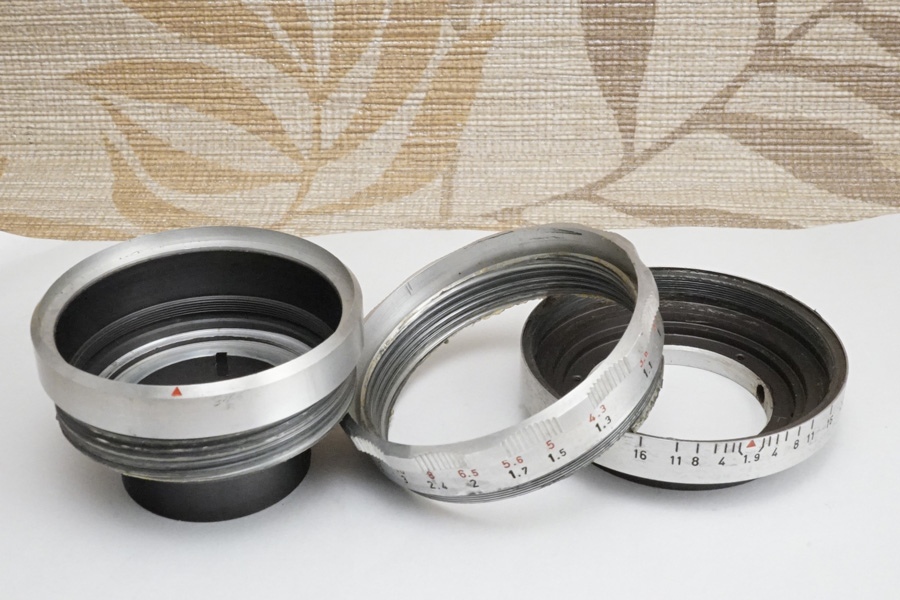 上の写真の説明に戻りますが、先ずは上の写真のとおり確実に「プリセット絞り環」と「絞り環」の区別を正しく指摘できる方が、意外にも少ないのがリアルな現実だったりします。それはこのようにバラしてからの話でなく、オールドレンズの状態で既にこれら2つの区別が間違っています。中にはプロの写真家ですら逆に認識している人が居たりするので、それって自分の撮影時の挙動と違うのに何故・・と言う話にしかなりません(笑)