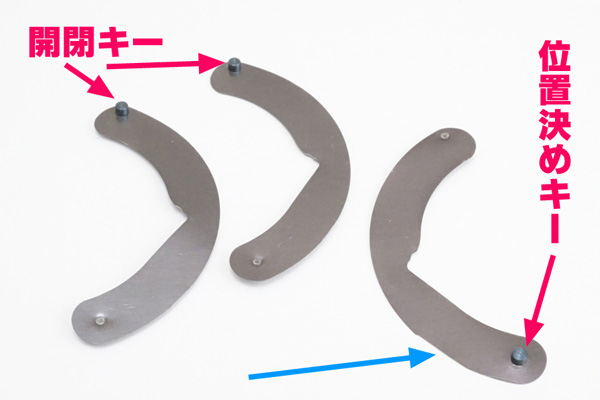 ↑実際にこれら2つの環/リング/輪っかを組み込むと、こんな感じに仕上がります。「制限壁」に対して「確定キー」の位置が関わっていることが明白です。然しよ〜く見ると「制限壁」と「確定キー」との間に隙間が少し残っているように見えます。その理由も後ほど明白になります。