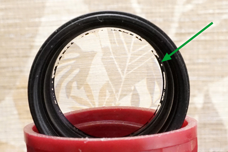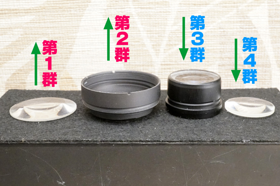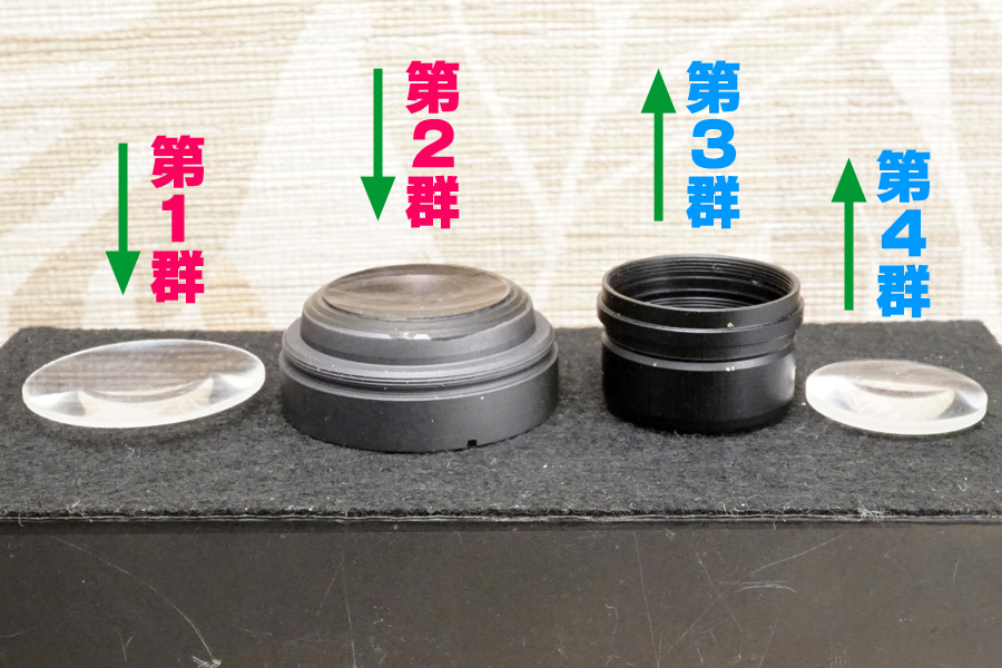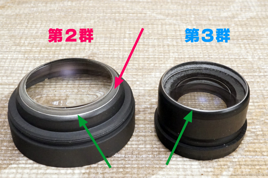 実はこの中で一番重要なのは❹なのです!(笑) この❹があるからこそ適切な無限遠位置で設定できるのに、今回の個体はバラしたところ表裏逆向きに入っていました・・オーバーインフ量が多くなっていた主原因の一つです (原因は他にもある)。