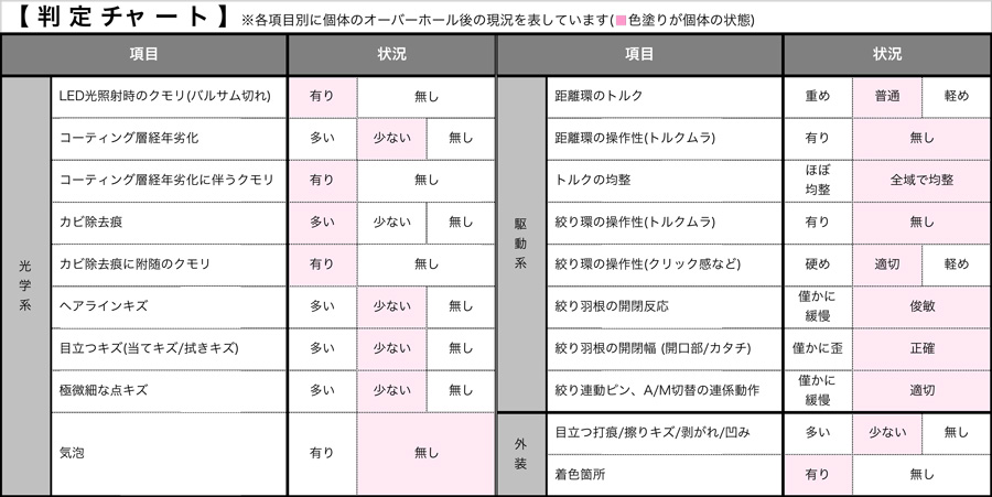 従って上の一覧は大変大雑把な括りとして捉えて頂けると助かりますが、光学系だけは既に過去扱った際に完全解体して取り出した光学ガラスレンズを実測している都合上、ほぼ間違いないハズですッ。