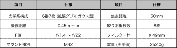 ところが50mm f/1.4の「Takumarシリーズ」では、ご覧のように「本来接着するハズの構成2枚目と3枚目が単独使用として配置されている」点で、せっかく4群6枚に接着してまとめることで「空気への露出面を減らして収差の影響を低減させる」手法とは、逆パターンに変更している話になっています。
