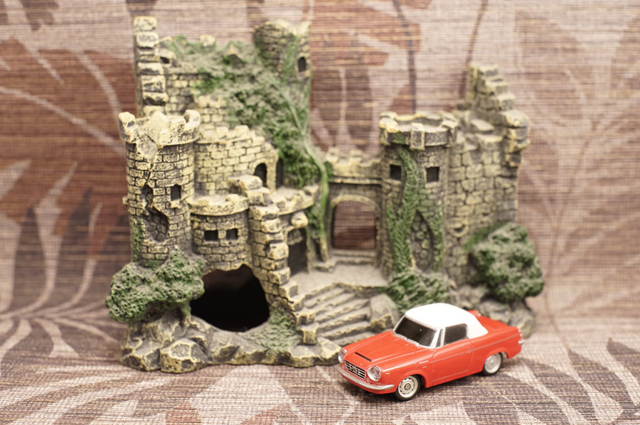 「ブラウニング現象」の影響が半減程度までしかUV光照射で改善しなかった為、このように黄色味がかっていますが、それ以前に実は被写体であるミニカーの色味が「朱色にだいぶ寄ってしまっている」偏重を視認できますから、やはりAWB設定による微調整は必須ですね(汗)